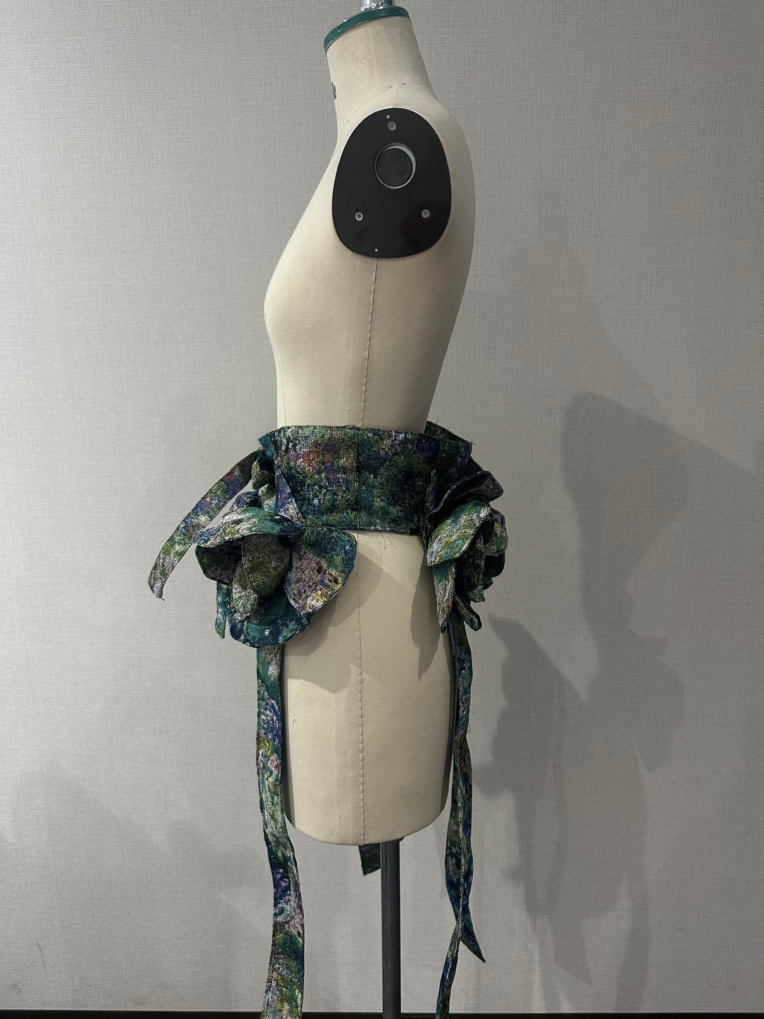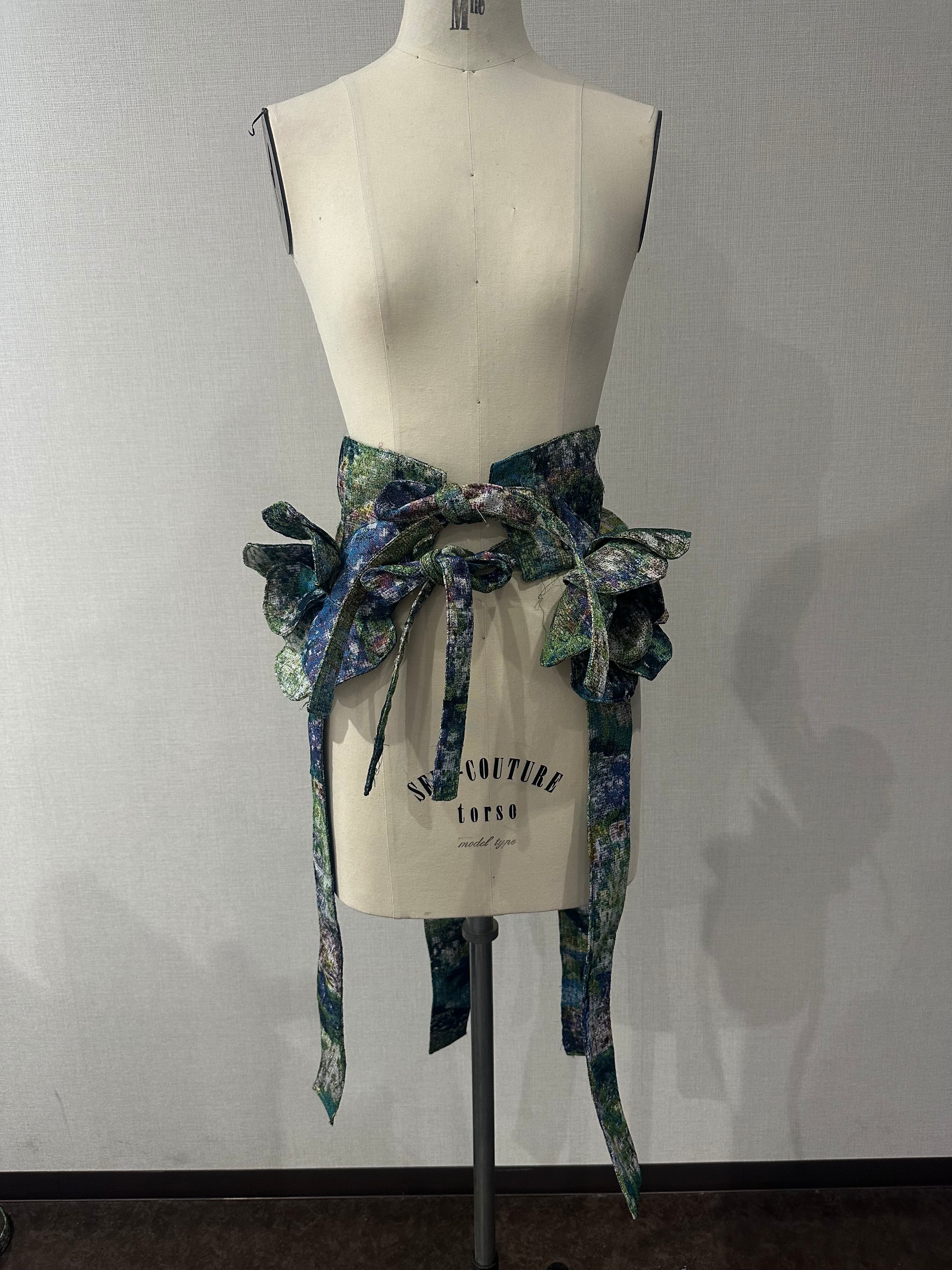MAYU ADACHI 2025 SS オリジナルジャガード生地でできたリボンで結ぶタイプのベルトです。